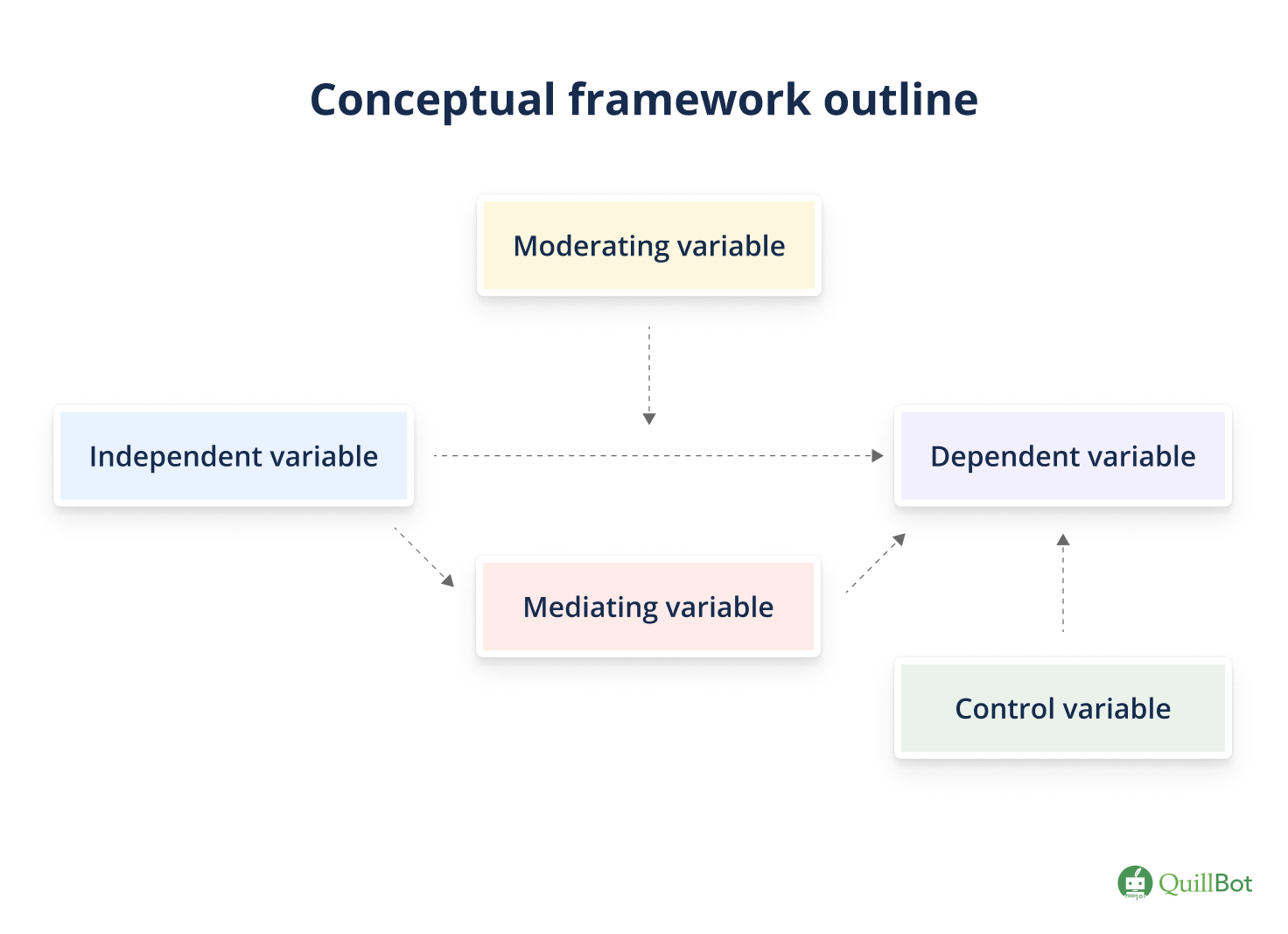 In a conceptual framework, you can illustrate the relationship between independent and dependent variables and a mediator variable. A mediator variable is included in a separate box, with an arrow pointing from the independent variable to it and from it to the dependent variable.