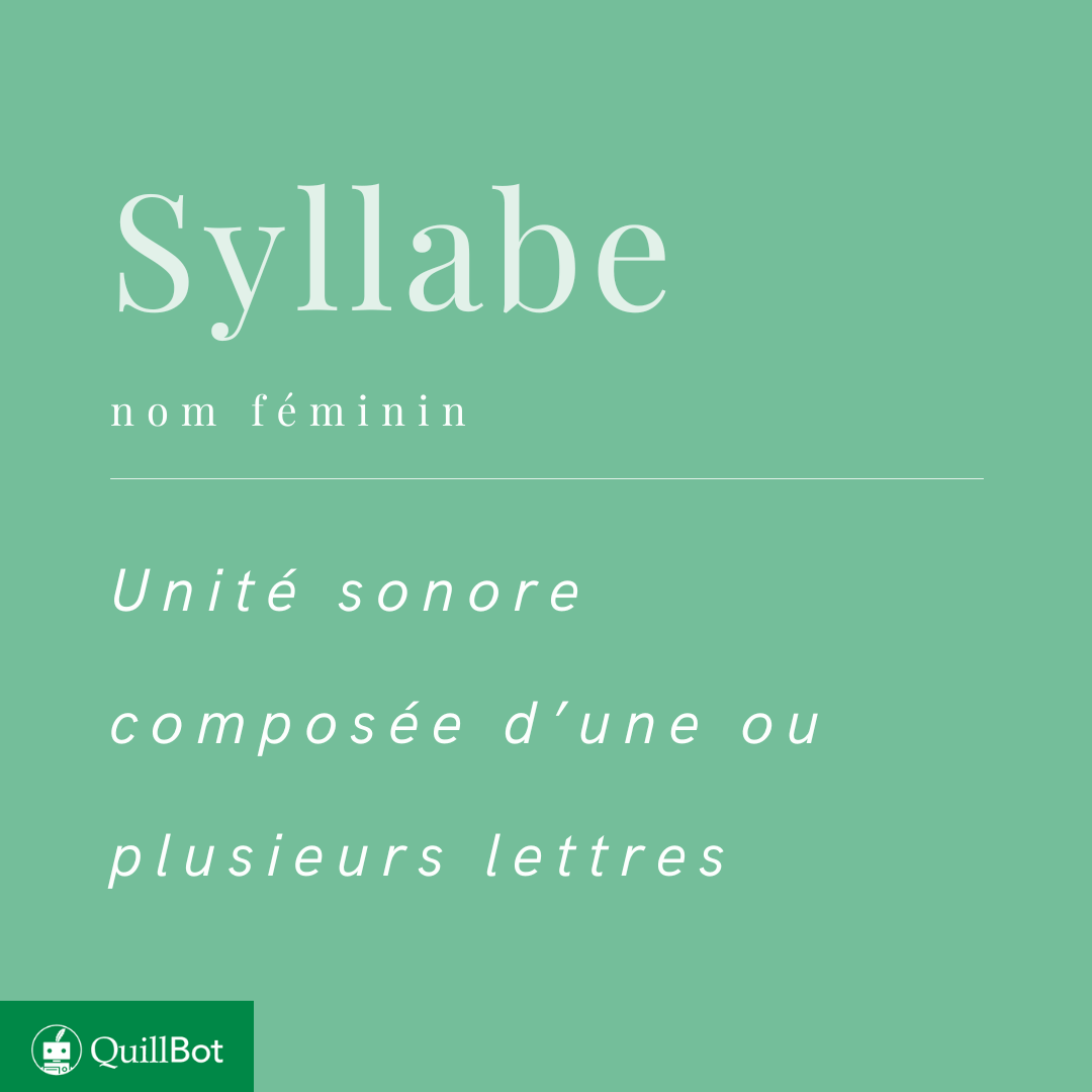 Charrin, A. (29 octobre 2025). Syllabe | Définition et exemples. Quillbot. Date : 24 avril 2026, issu de l’article suivant : https://qbot.toolsmeen.com/fr/blog/linguistique/syllabe/